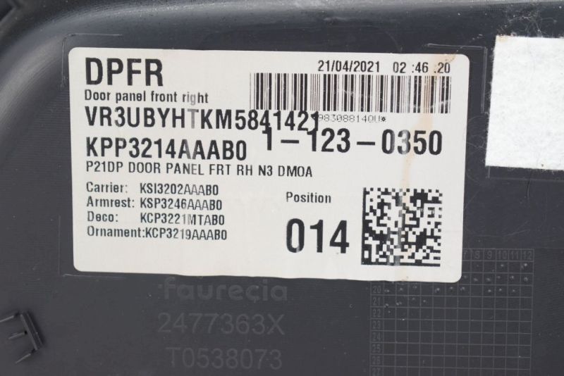Türverkleidung Türpappe rechts vorn PEUGEOT 208 2008 II