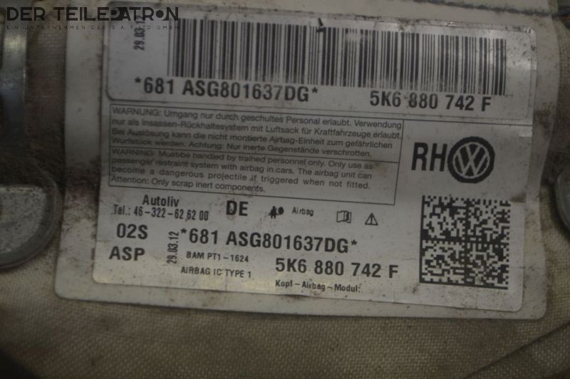 Airbag rechts Kopfairbag Dachairbag SeitenairbagVW GOLF 6 VI (5K1) 2.0 TDI